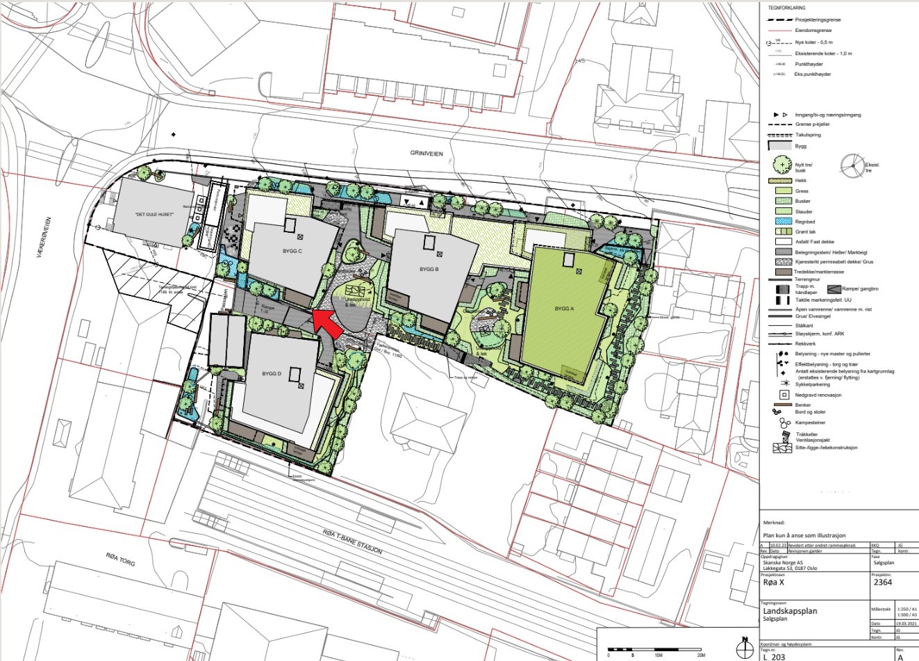 Rammetillatelsen er gitt, se sak på saksinsyn 2020018433. Det gjøres oppmerksom på at det foreligger klager til prosjektets rammetillatelse som er til behandling hos Statsforvalteren. Eiendommen på hjørne mot Griniveien /Vækerøveien (det gule huset) gnr. 12, bnr. 34 er regulert til spesialområde – bevaring.