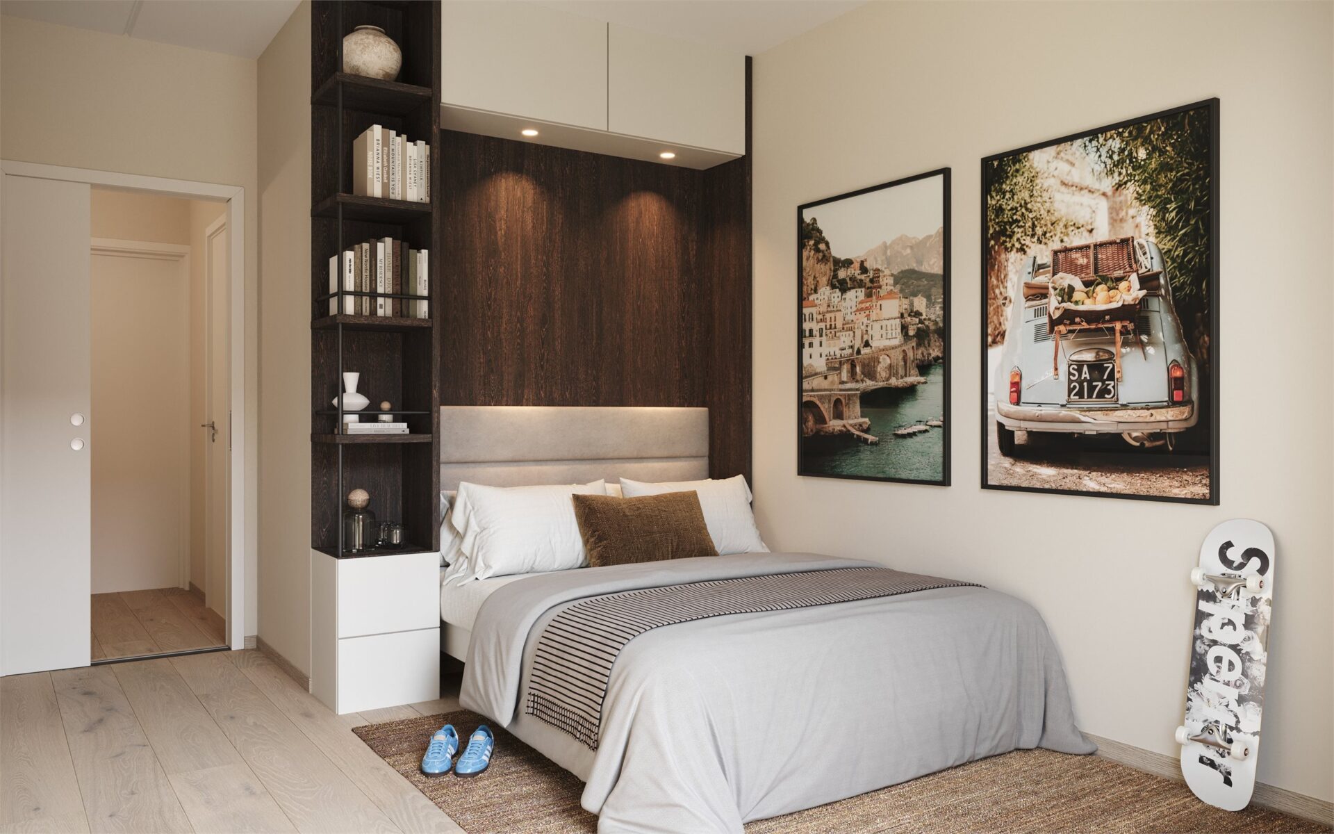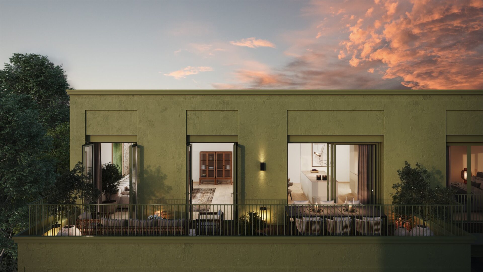 Alle leiligheter leveres med fullintegrert kjøleskap og oppvaskmaskin, induksjonstopp og integrert komfyr fra Bosch eller tilsvarende.