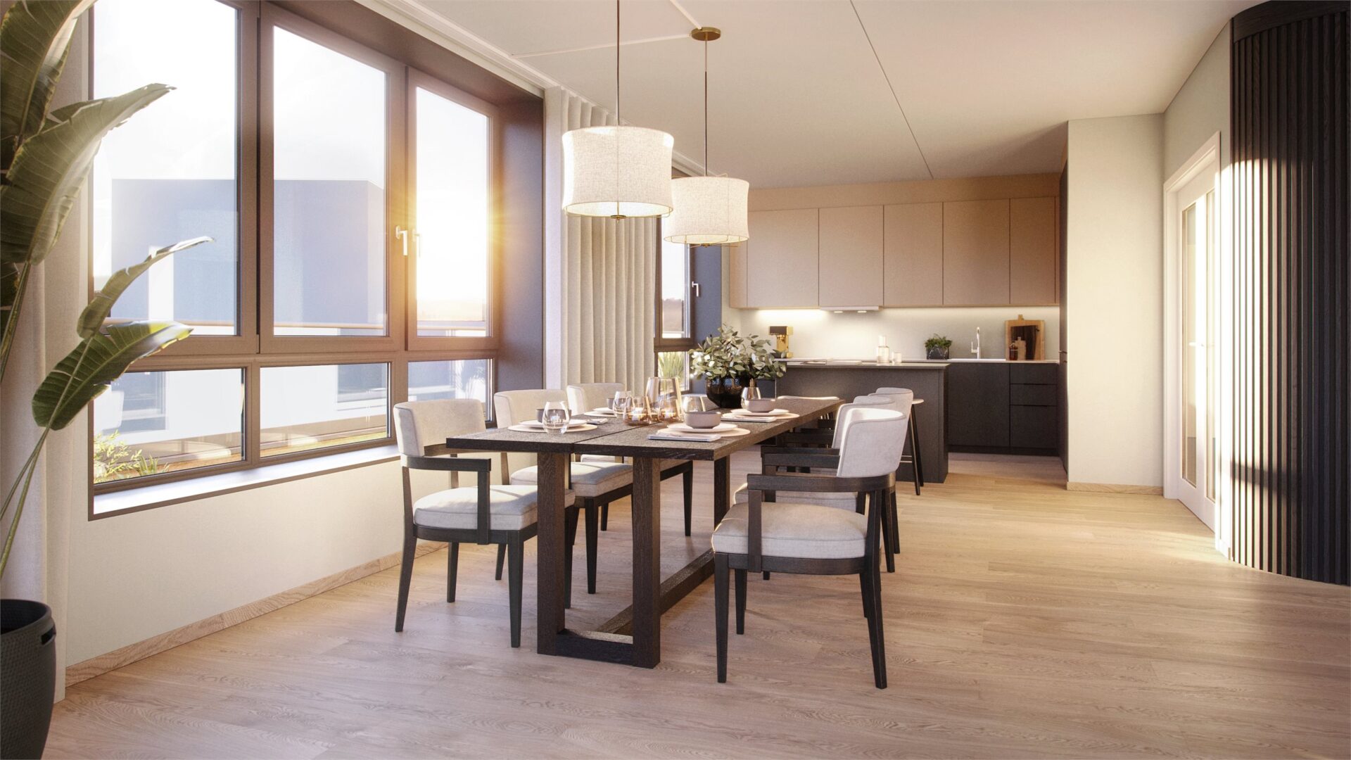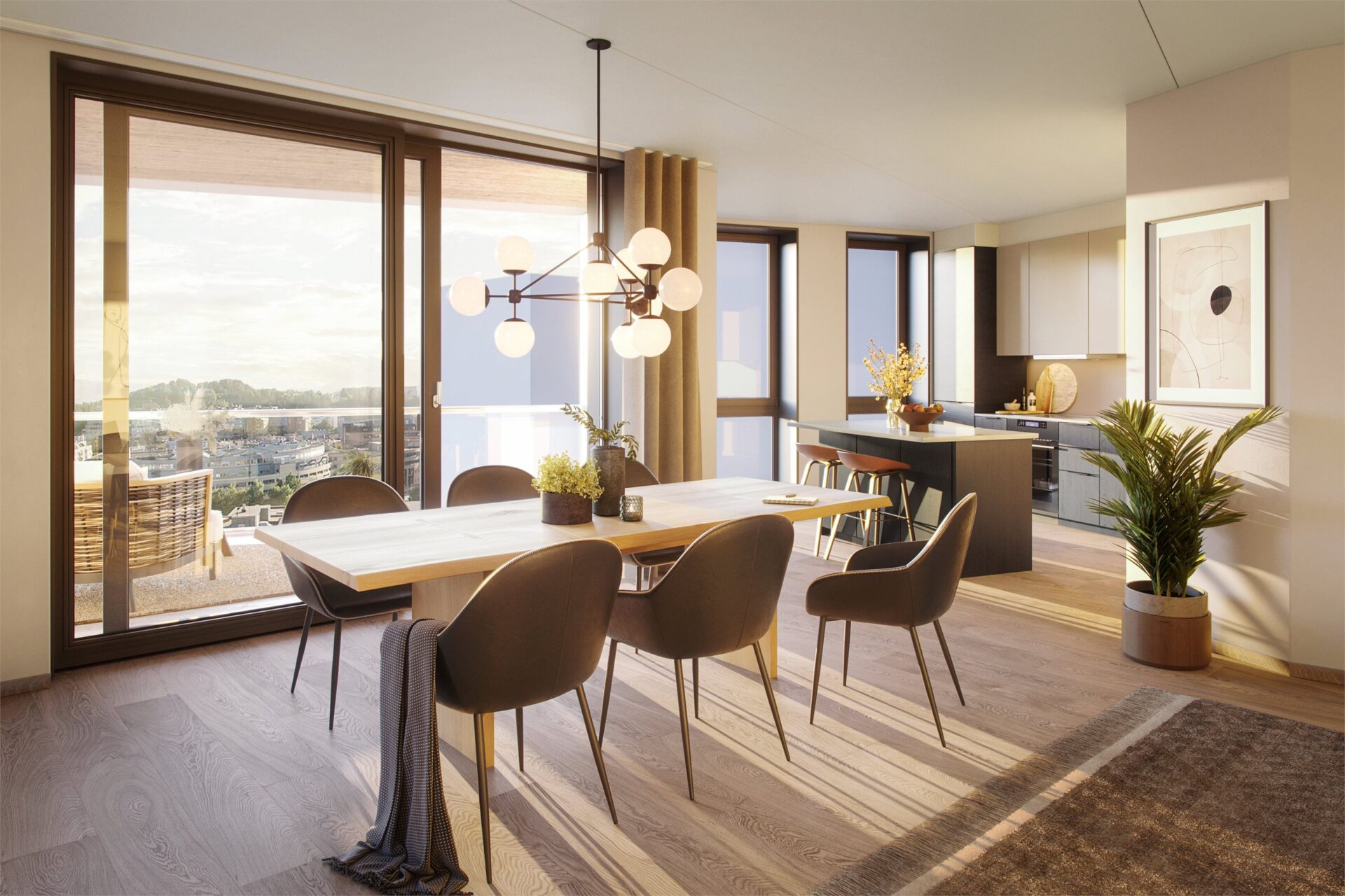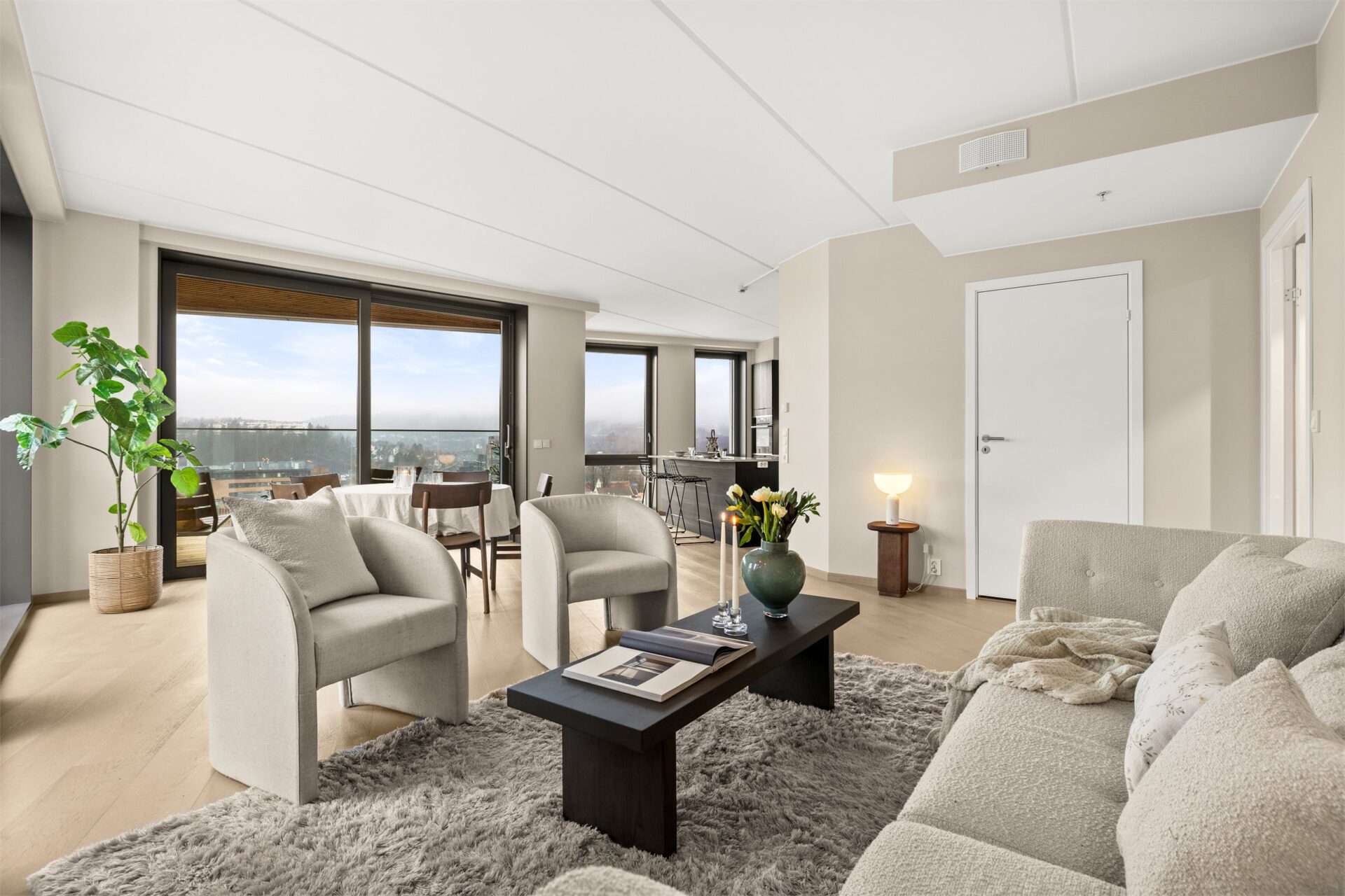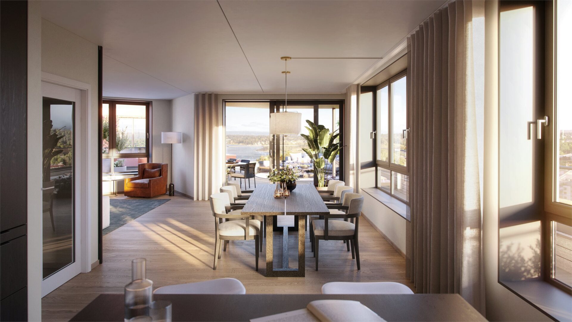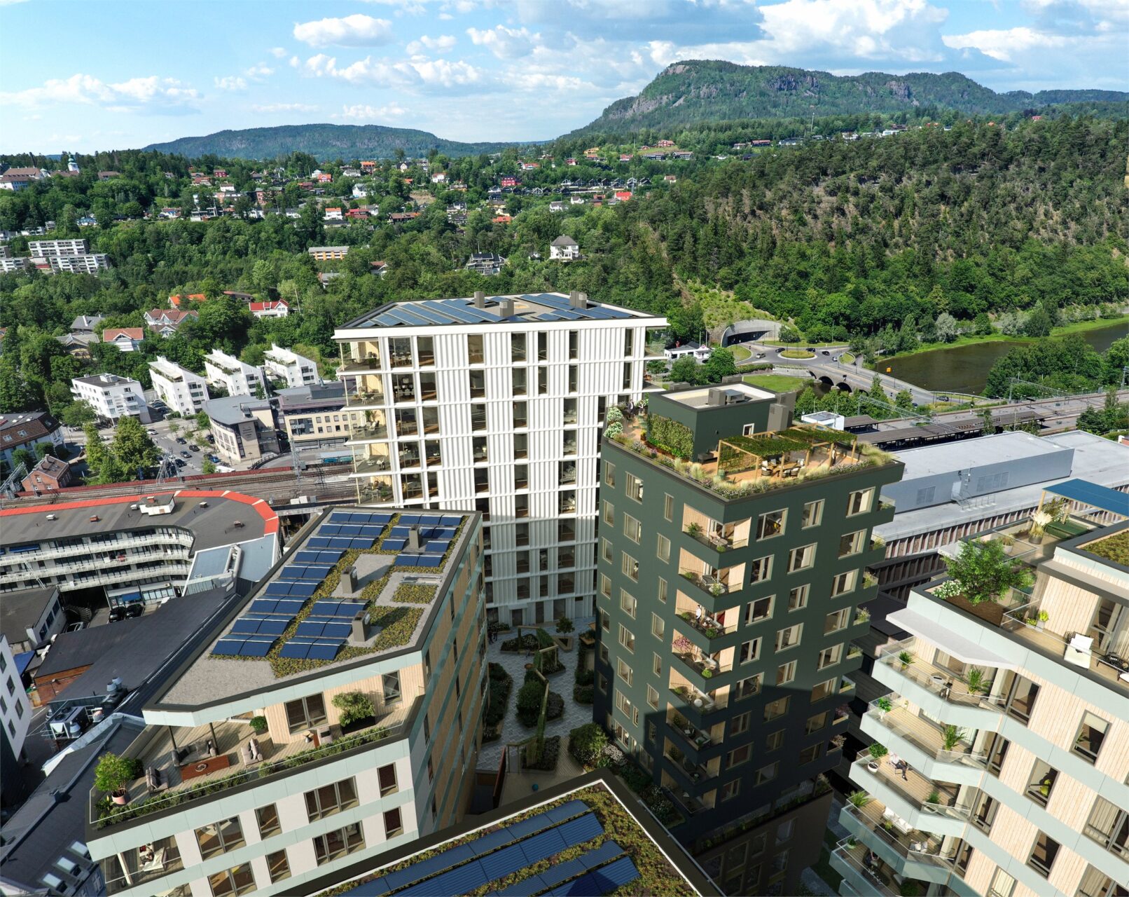 Alle leilighetene ligger høyt over bygulvet, og flere med fjordutsikt. Her kan du finne deg en bolig du aldri har sett maken til tidligere, med en kvalitet på materialer og finisher du vil nyte å ha rundt deg. Samtlige leiligheter får egen uteplass, tilgang til felles takhage i 6. etasje og felles takterrasse i 14. etasje.