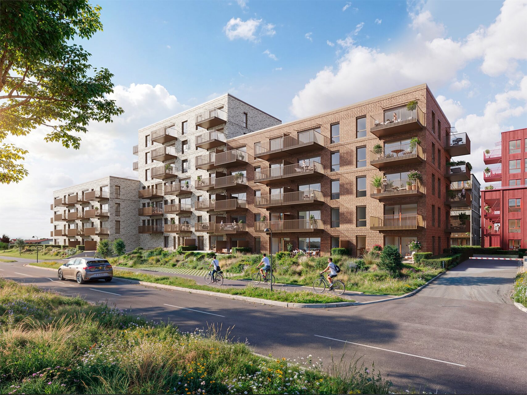 Det første feltet inneholder en lamell og fem punkthus. Totalt 212 leiligheter på 35 – 110 kvm – med stor variasjon i fasadematerialer og ikke minst farger. Det første salgstrinnet ble lansert 24. februar 2026.