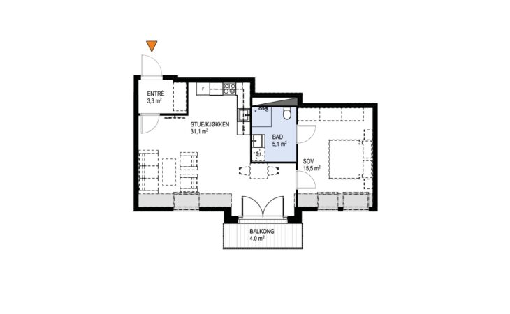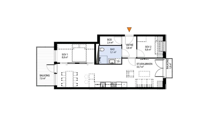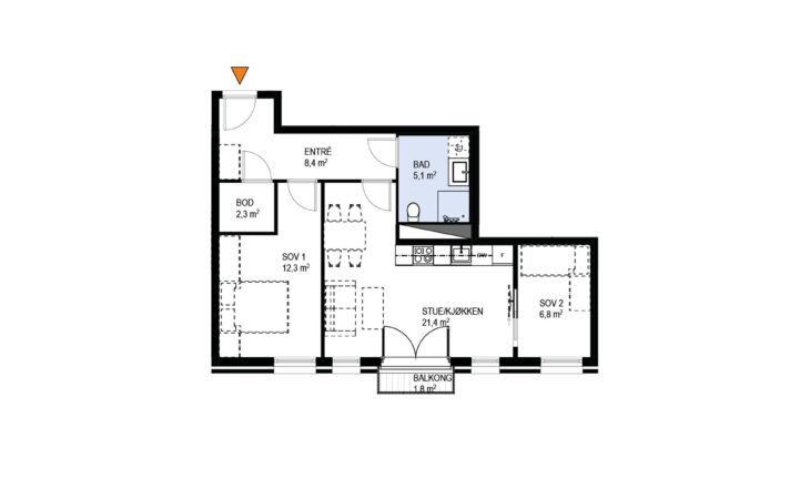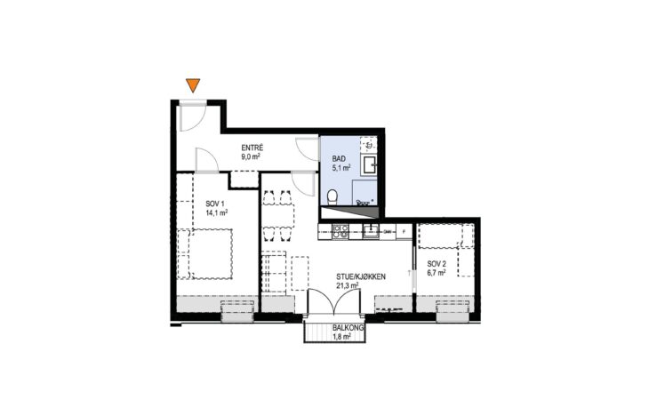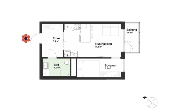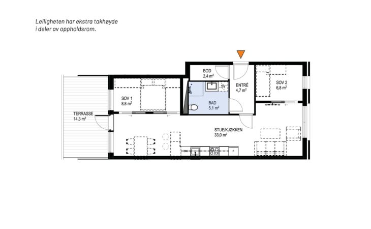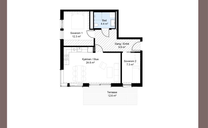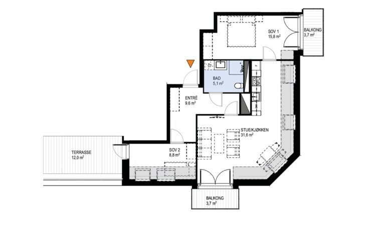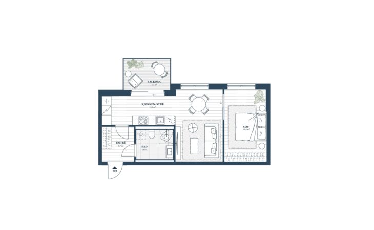 Ny, lekker 2-roms med sørvendt markterrasse på 10 m². Beliggenhet midt i Ås sentrum. Est. innflytting våren 2026