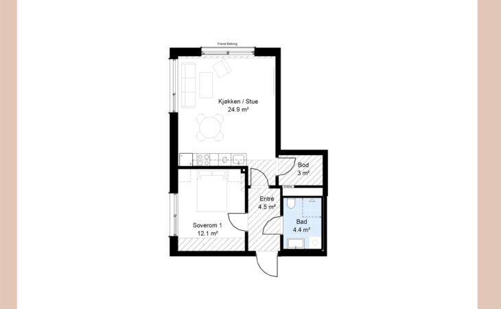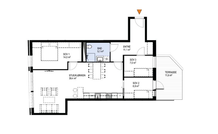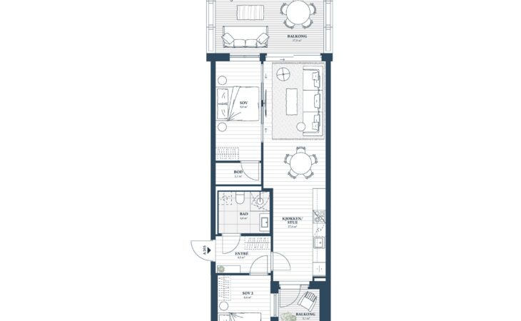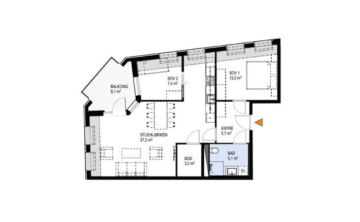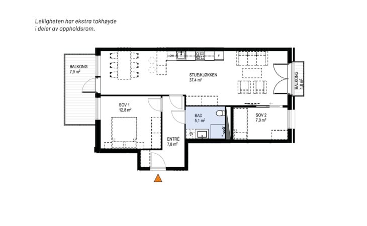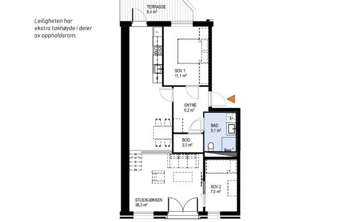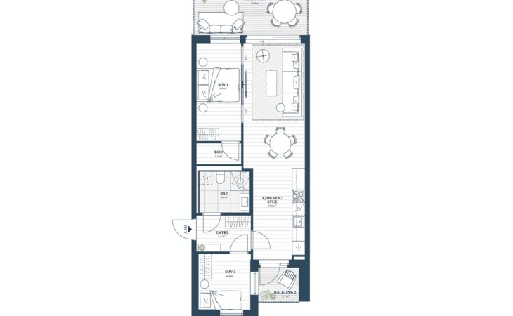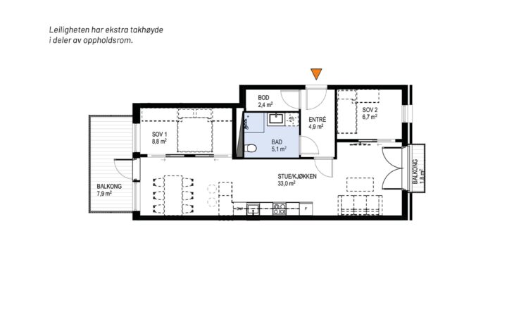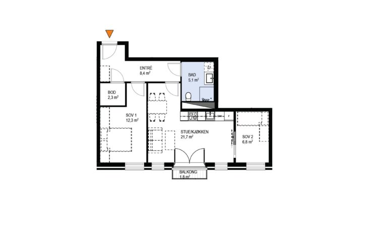Ny, lekker 2-roms med sørvendt markterrasse på 10 m². Beliggenhet midt i Ås sentrum. Est. innflytting våren 2026