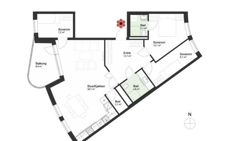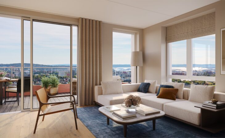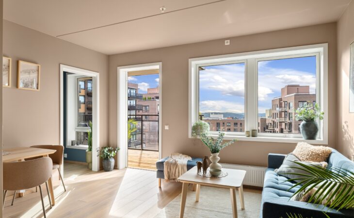 Gjennomgående 4-roms leilighet i 4.etg | Garasje | To balkonger 15,7 m² og 10,9 m² | Lav dok. avg | Overtakelse 23.05.25