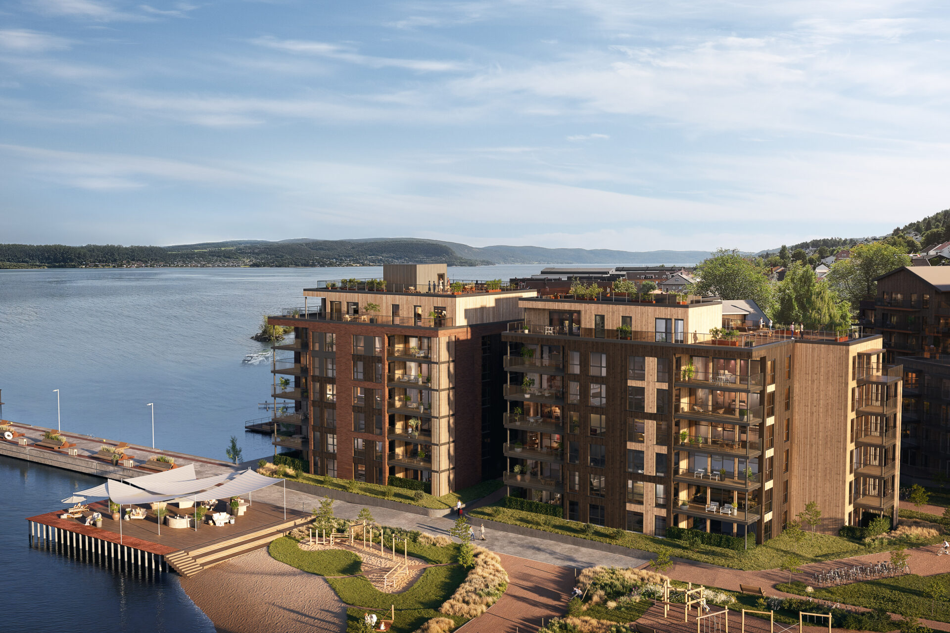 - Bryggekanten: Her bor du helt i vannkanten, med fjorden som nærmeste nabo. Leilighetene har åpen utsikt, rikelig med sol og nærhet til fjordlandskapet som skaper en helt egen atmosfære.